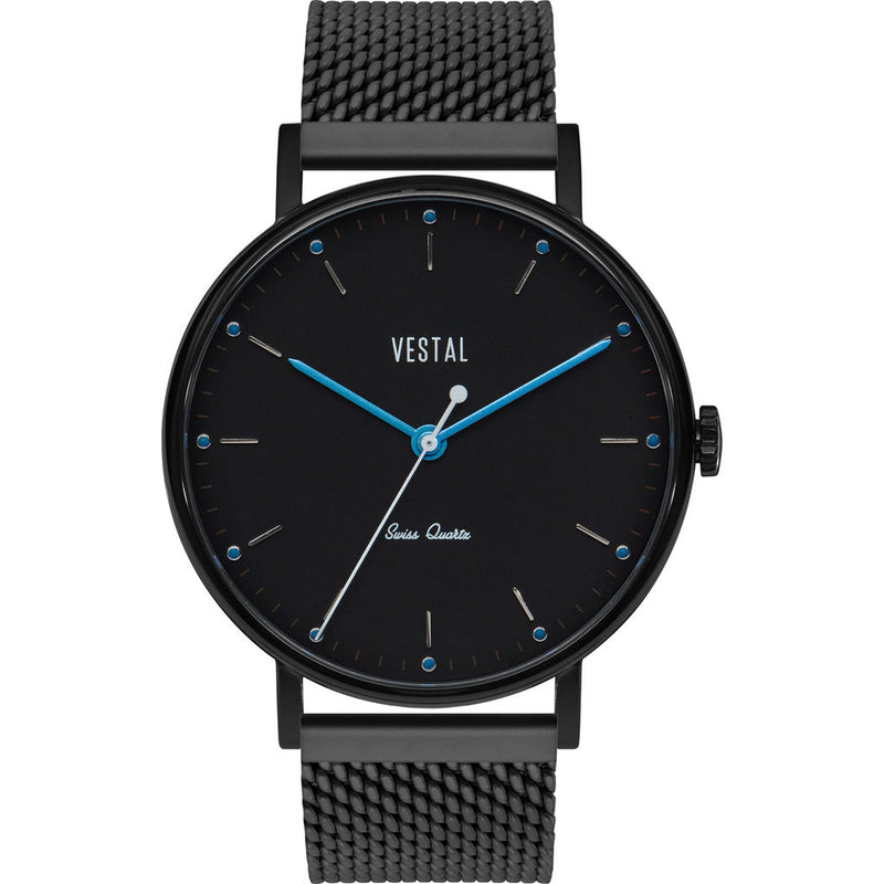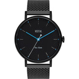 There is something to be said about a dependable watch that is equipped with quality materials and high character. The Sophisticate Metal Watch from Vestal’s watch collection never disappoints. Not only are their timepieces consistently reliable and precise, but Vestal's excellence and resilience is what separates them from other watch companies. Vestal watches are great accessories for any special occasion, as they are fine-tuned with style and expression. The Sophisticate is furnished with a black stainless-steel mesh strap that beautifully complements the black case and blue accent dial. Some awesome features include Swiss Jewel Movement viewed through a clear crystal case-back, creating sophisticated perfection. The sleek design of the Sophisticate Series watches makes them the best option to wear at work or during play, perfect for everyday wear.
