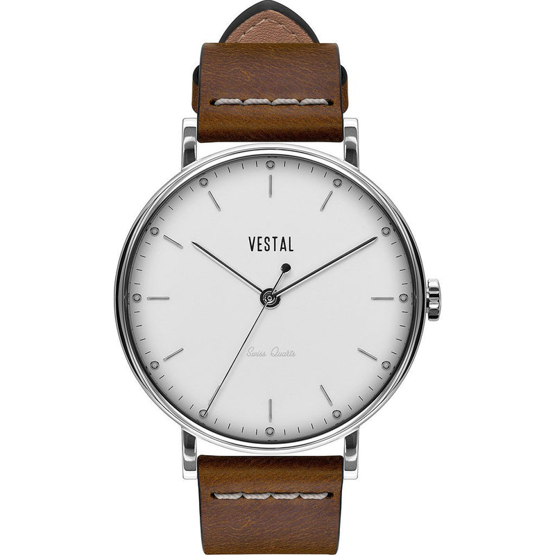Vestal The Sophisticate Watch | Brown/Silver/White/Italian Leather/Swiss Jewel Movement