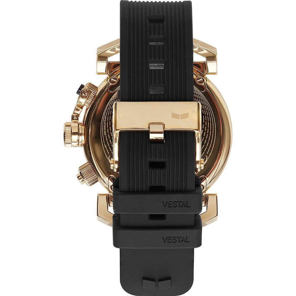 The USS Observer Chrono Watch from Vestal features a unique design inspired by naval ships commissioned by the US Navy. This watch boasts a round, oversized 47mm 316L solid stainless steel case, Japanese quartz analog movement, and is pulled together nicely with a 21mm wide silicone strap. This watch is both versatile and stylish, with a 9 o'clock screw-down crown and a raised bezel to help increase durability. This watch is sure to make a statement and complement just about any outfit.