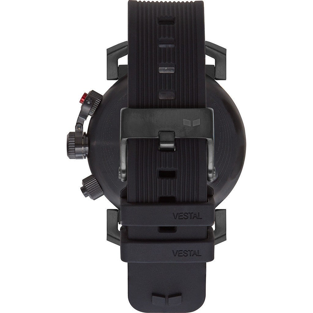 The USS Observer Chrono Watch from Vestal features a unique design inspired by naval ships commissioned by the US Navy. This watch boasts a round, oversized 47mm 316L solid stainless steel case, Japanese quartz analog movement, and is pulled together nicely with a 21mm wide silicone strap. This watch is both versatile and stylish, with a 9 o'clock screw-down crown and a raised bezel to help increase durability. This watch is sure to make a statement and complement just about any outfit.
