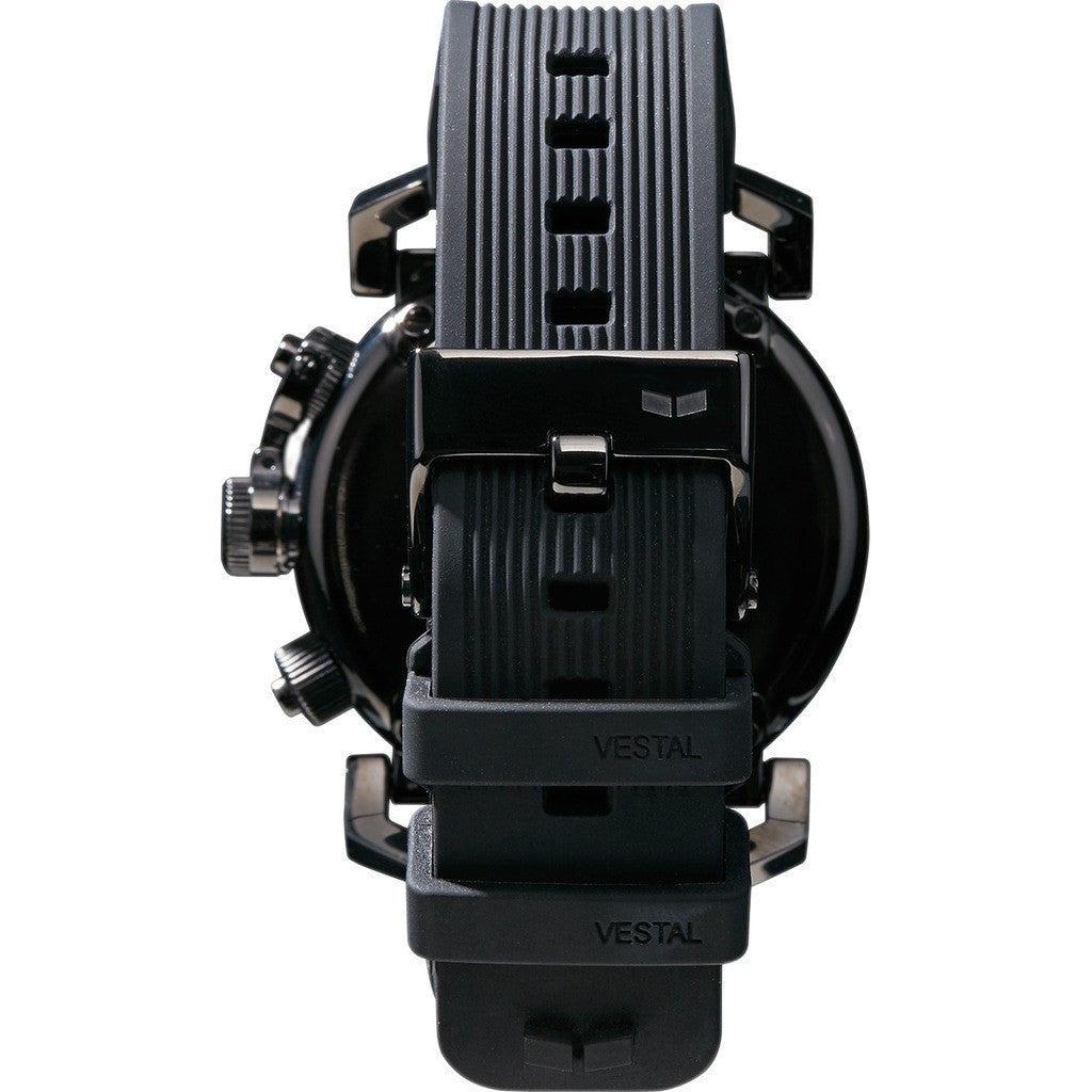The USS Observer Chrono Watch from Vestal features a unique design inspired by naval ships commissioned by the US Navy. This watch boasts a round, oversized 47mm 316L solid stainless steel case, Japanese quartz analog movement, and is pulled together nicely with a 21mm wide silicone strap. This watch is both versatile and stylish, with a 9 o'clock screw-down crown and a raised bezel to help increase durability. This watch is sure to make a statement and complement just about any outfit.