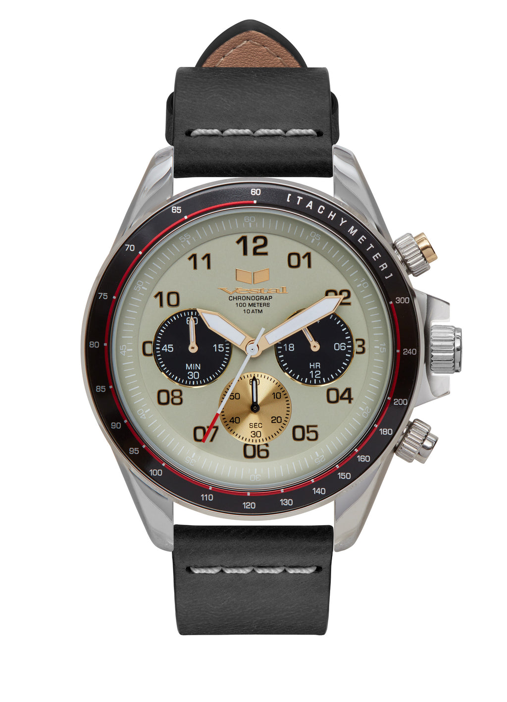 - Movement: 6-Hand Premium Chronograph. Made in Japan