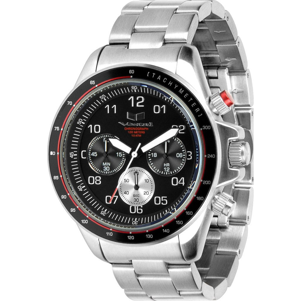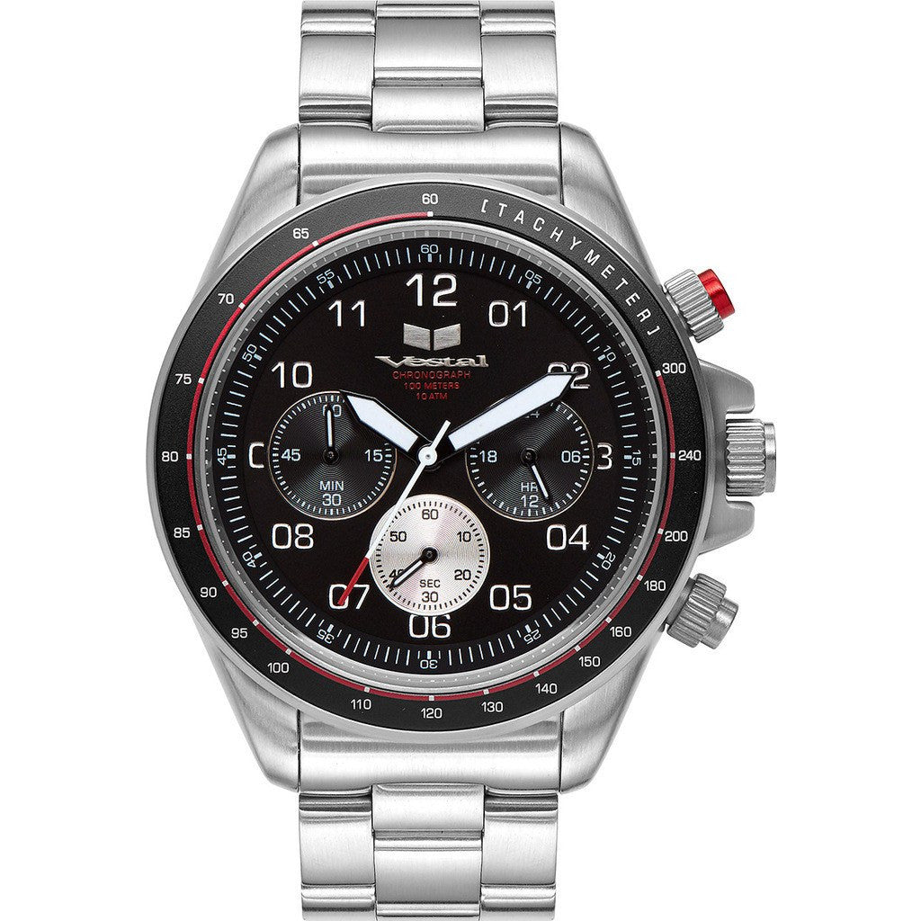 The ZR-2 from Vestal draws inspiration from the ZR-3 model you know and love, enclosed in a smaller, more compact 43mm case. This mid-sized chronograph's case is crafted from stainless steel and features an angular fixed bezel and screw-down logo plate for an overall classic look. Pulled together by a three-link bracelet strap for a retro feel, this watch is sure to turn heads.
