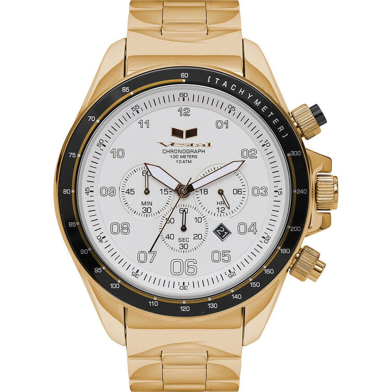 The ZR-3 is the largest yet in the Vestal collection. This vintage-inspired timepiece is an oversized premium round chronograph with stainless steel case construction and features an extra thick crystal face enclosed in an angular fixed bezel. All of these premium features are pulled together with a retro-style 3-link bracelet strap for a sleek and refined finish.