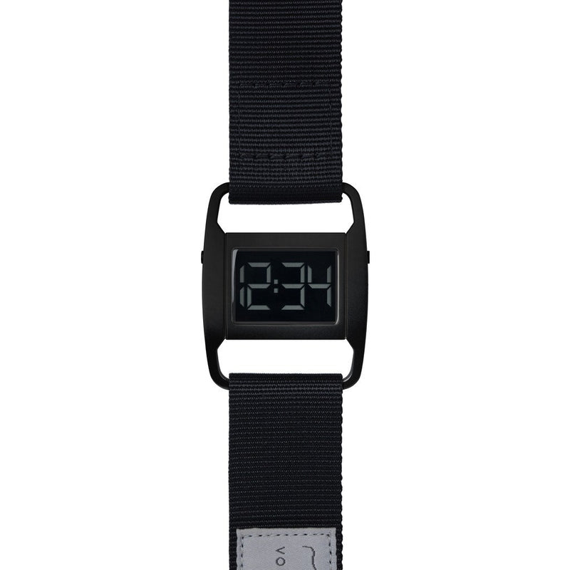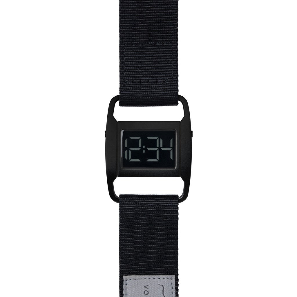 Designed by Michael Young, VOID's PXR-5 Matte Black Watch was originally launched in 2005, but its popularity has earned it a permanent spot in their collection. The shape of its stainless steel case enclosing a digital LCD display makes it a future classic. Strap it on with the woven nylon utility strap in black.