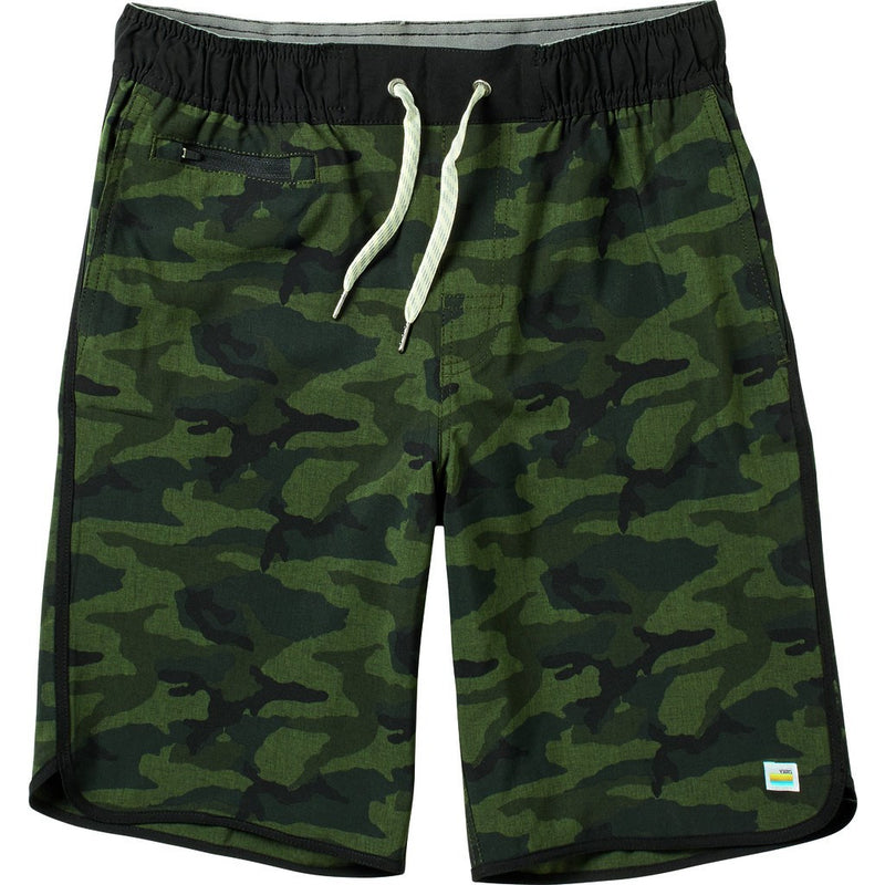 Vuori created the Banks Shorts to provide comfort and style for any occasion. Whether you're jumping in the water, going for a hike, or simply relaxing, the Banks in Olive Camo are the go to shorts. Featuring Vuori's V4 Performance four-way stretch material, these shorts wick moisture, dry quickly, and have anti-odor properties to keep you smelling fresh even after a workout. The Banks also have an elastic waist band, a back zip pocket with a welt pocket flap and a front zip coin pocket.