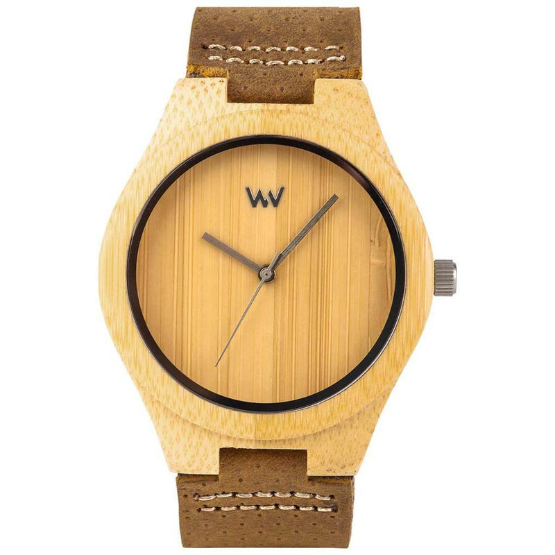 A simple watch that will go with just about everything, the WeWood Dellium Bamboo Wood Watch is what you're looking for. Featuring a Bamboo circular wooden case with metallic hands on a clean woodgrain face. The leather band is fully adjustable and has thread accents to add personality. This sustainable watch is lightweight and comfortable, good for all day adventures.