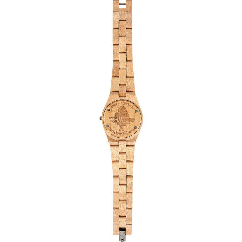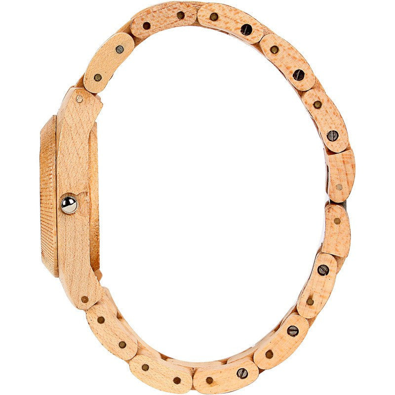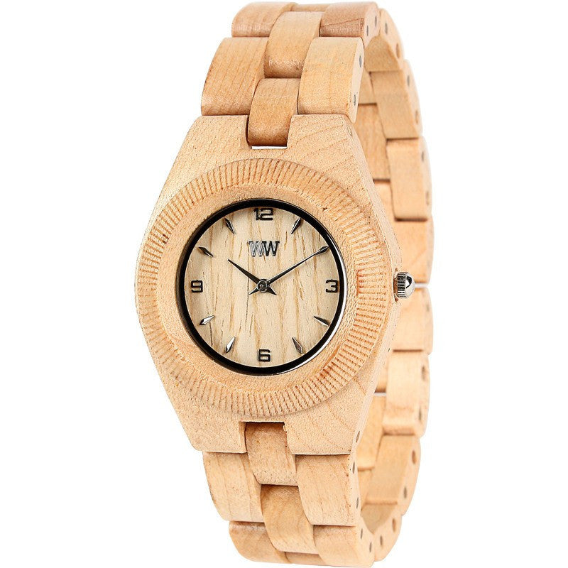 The WeWood Odyssey Watch is part of their exclusive women's line, and features styling reminiscent of the hole you might find in an ancient tree where critters dwell. The Odyssey Beige is constructed from Maple, a tree often used in smoke houses and in culinary arts. It's also used to create many musical instruments like the violin and the guitar. The subtle styling of the WeWood Odyssey combines natural eco-friendly design with modern elegance.