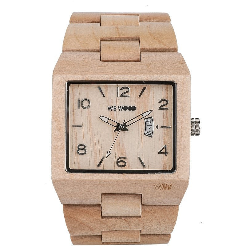 The WeWood Sculptor Watch features a strong, robust face as if it were carved directly into a tree, featuring a small window into the current date. The Sculptor Beige is made from all natural Maple, a tree often used in smoke houses and in culinary arts and also used to create many musical instruments like the violin and the guitar. While substantial in size, the natural wood of the WeWood Sculptor will sit more comfortably on your wrist than any other watch you have worn.