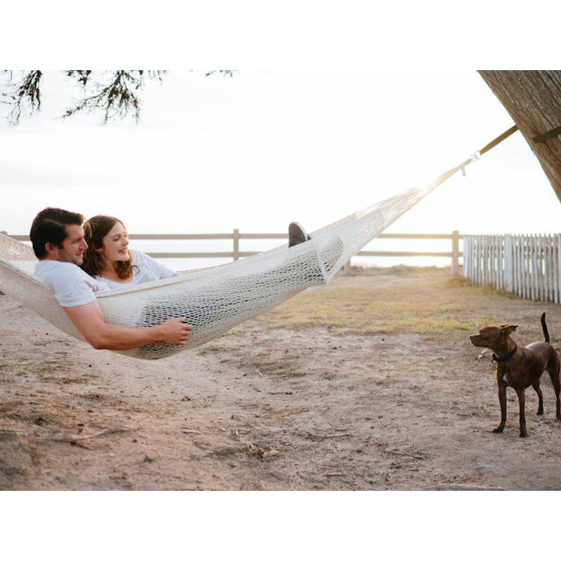 Yellow Leaf Hammocks crafts the Catalina Cotton Rope Hammock with heavy duty 100% cotton yarn. Handwoven and hand-dyed, the Catalina can hold up to 400 pounds. Yellow Leaf includes a "Hammocking 101" hanging guide and a hammock tote with each Cotton Rope Hammock.