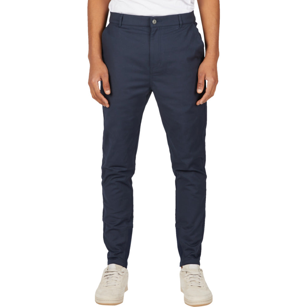 The Zanerobe Sharpshot Men's Chino Pants in Duke Blue are great for almost any occasion. They are a carrot fit pant, which means they are baggier at the top and have a skinny fit from the calf down. Made with a constructed waist, zip fly, relaxed rise & slight drop crotch. They also have a tapered cuff with rib insert.