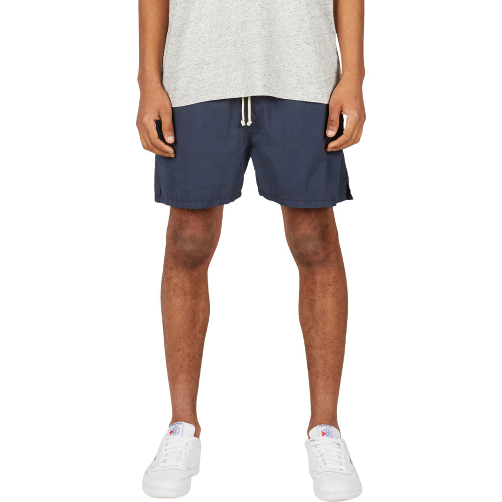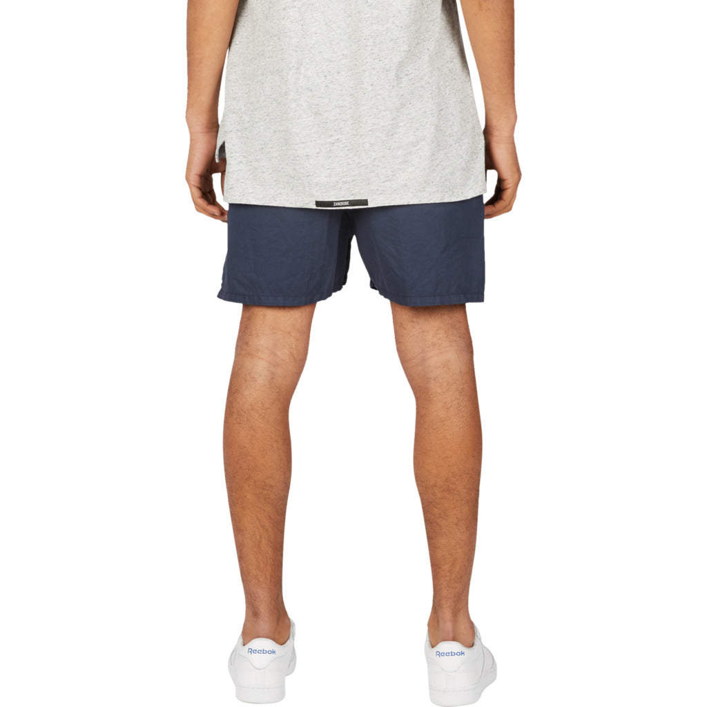 The Zanerobe Duke Blue Zephyer Men's Shorts are 100% cotton. These shorts feature a relaxed fit, side entry pockets -one with internal auto lock zipper, side split hem detail, drawstring waist and a back pocket. The best navy blue shorts for warmer weather, stylish and comfortable. Hand-finished fabric and wash.