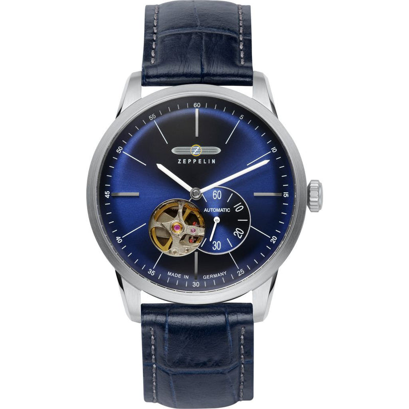 Offering a glimpse into its mechanical movement, the Open-Heart Flatline Watch by Zeppelin blends elements of traditional and contemporary design. The Open-Heart Flatline's stainless casing and genuine blue leather strap offer a traditional aesthetic, while the open-heart dial adds a modern twist. Get a watch that boasts timeless elegance and technical refinement with the Zeppelin Open-Heart Flatline Watch!