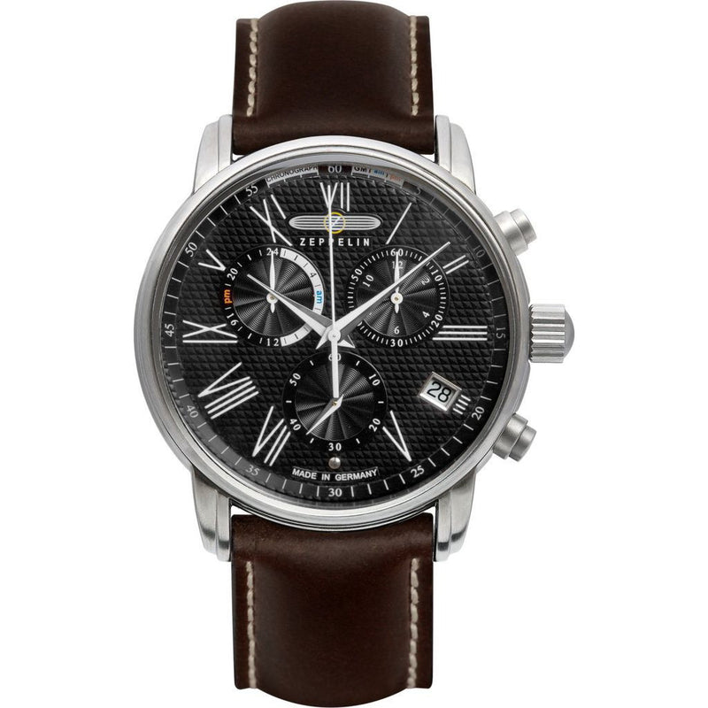 Beauty and performance come together to bring you the Transatlantic LZ-127 Chronograph Watch by Zeppelin. The genuine leather strap and stainless steal casing offer a traditional aesthetic, while the unique chronograph dial adds an element of contemporary styling. Between the second time zone display and retro chronograph function, this watch has all the intrigue and refinement of the airships it was named after.