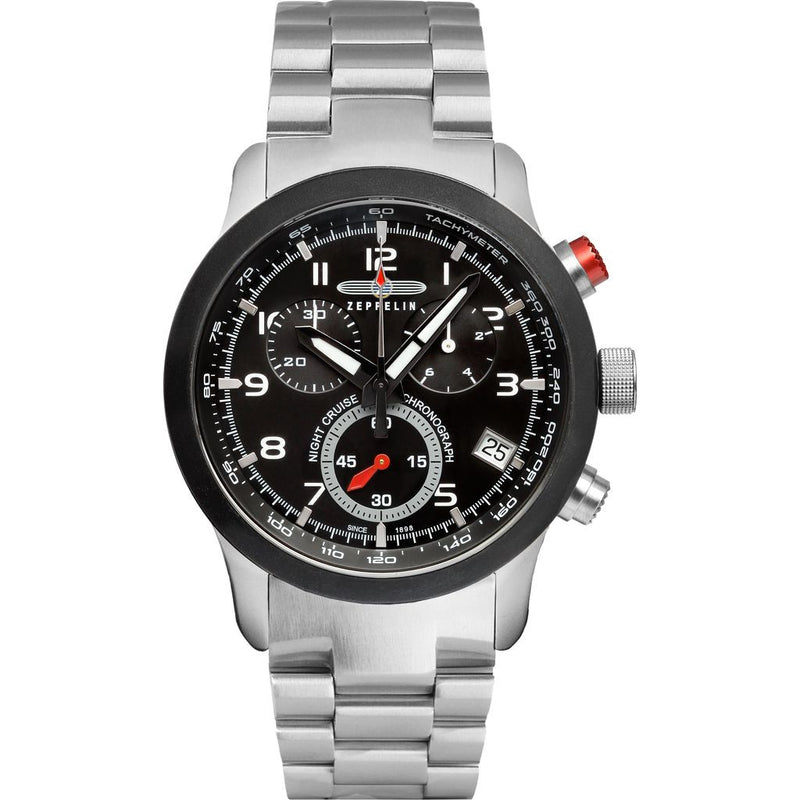 Inspired by the fascinating impressions of a night-time journey in a Zeppelin, the Night Cruise Chronograph Watch is a sleek and mysterious timepiece. The stainless steel construction and black dial of this watch offers a contemporary aesthetic, while the chronograph dial adds a hint of traditional styling. The hands and digits of this watch are covered in aluminous coating, making the Night Cruise Chronograph the perfect companion for late night adventures.