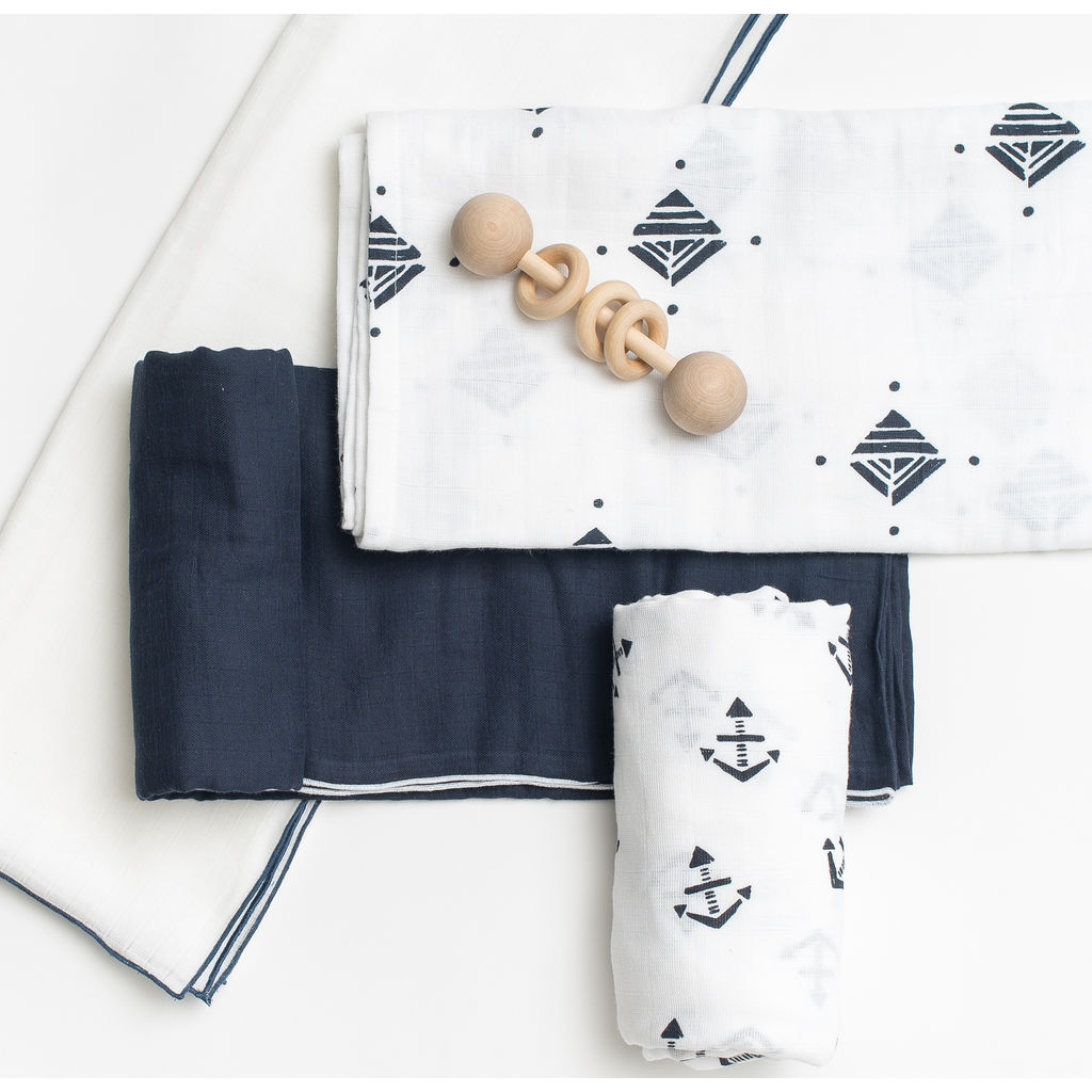 Only the best for your baby, the Carter Organic Cotton Muslin Swaddle is made of 100% organic cotton muslin. The Navy Blue Anchor print was hand drawn and is the perfect nautical accent. This blanket is a versatile size and light weight so you can use it as an all around blanket. Use it to swaddle your baby, as a changing pad cover or even a burp cloth.