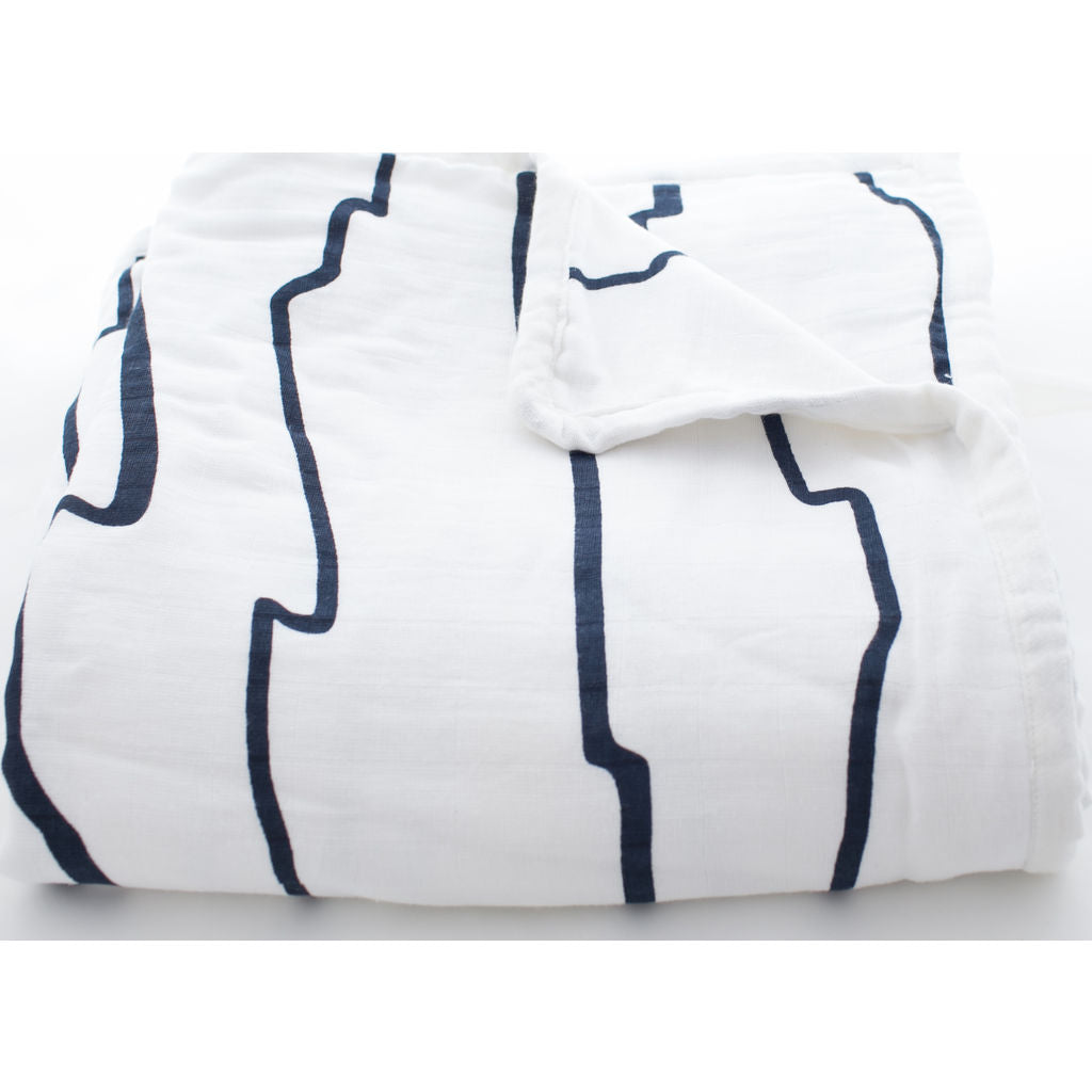 Whether you're at the park, home or even the beach it is important for you to have a soft blanket for your little on. The Hadley Cuddle and Play Muslin Blanket from Zestt is made from 100% organic cotton muslin and perfect for any occasion. It made out of four layers of 100% organic muslin making it incredibly soft and the ideal medium weight to keep our baby warm. The navy pattern is hand drawn, giving it that artisan touch.