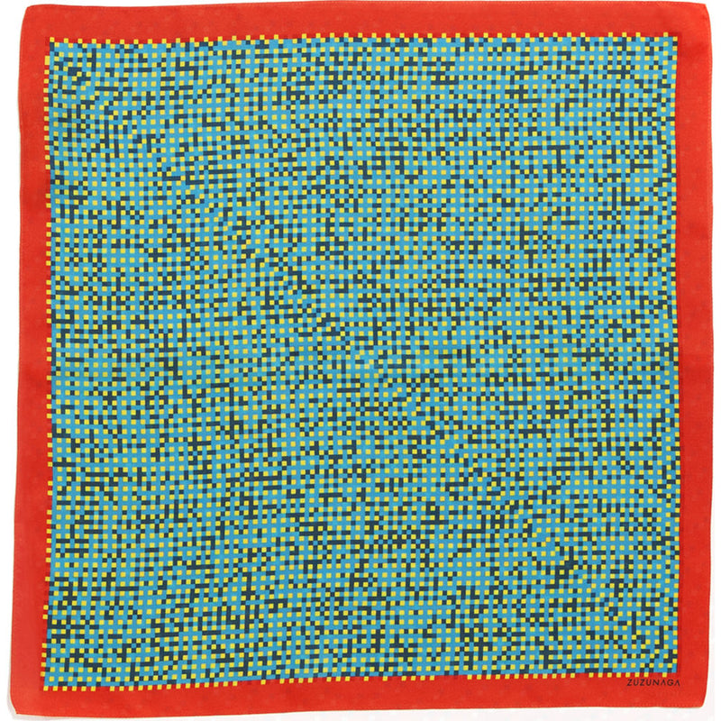 A member of Zuzunaga's innovative Bitmap Collection, the Random Red Pocket Scarf makes use of a high quality, digitally printed pixel design to create its charming appearance. Crafted in Italy with a 100% silk twill, the Red Random Square Scarf gets this unique pattern from a highly compressed digital image of an urban landscape. In other words, a digital photo has been zoomed in hundreds of times until only dots of color, or pixels, remain. In this way, each piece of the Bitmap collection acts as a map of digital image in addition to a physical space.